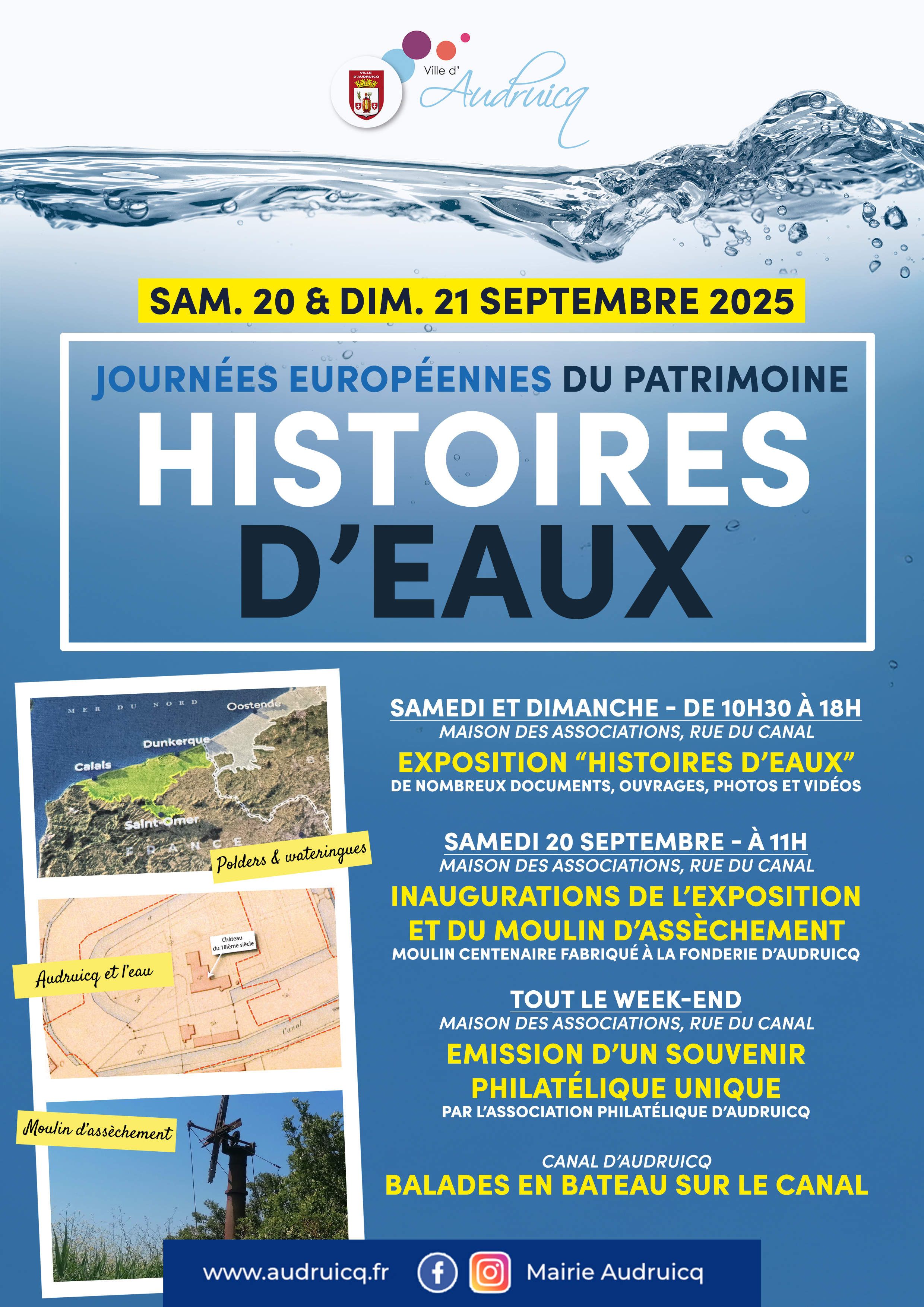 À l’occasion des Journées Européennes du Patrimoine, la Ville d’Audruicq vous invite à plonger dans ses “Histoires d’eaux”. Une thématique en lien direct avec notre territoire, marqué par les polders, les wateringues et les ouvrages hydrauliques.