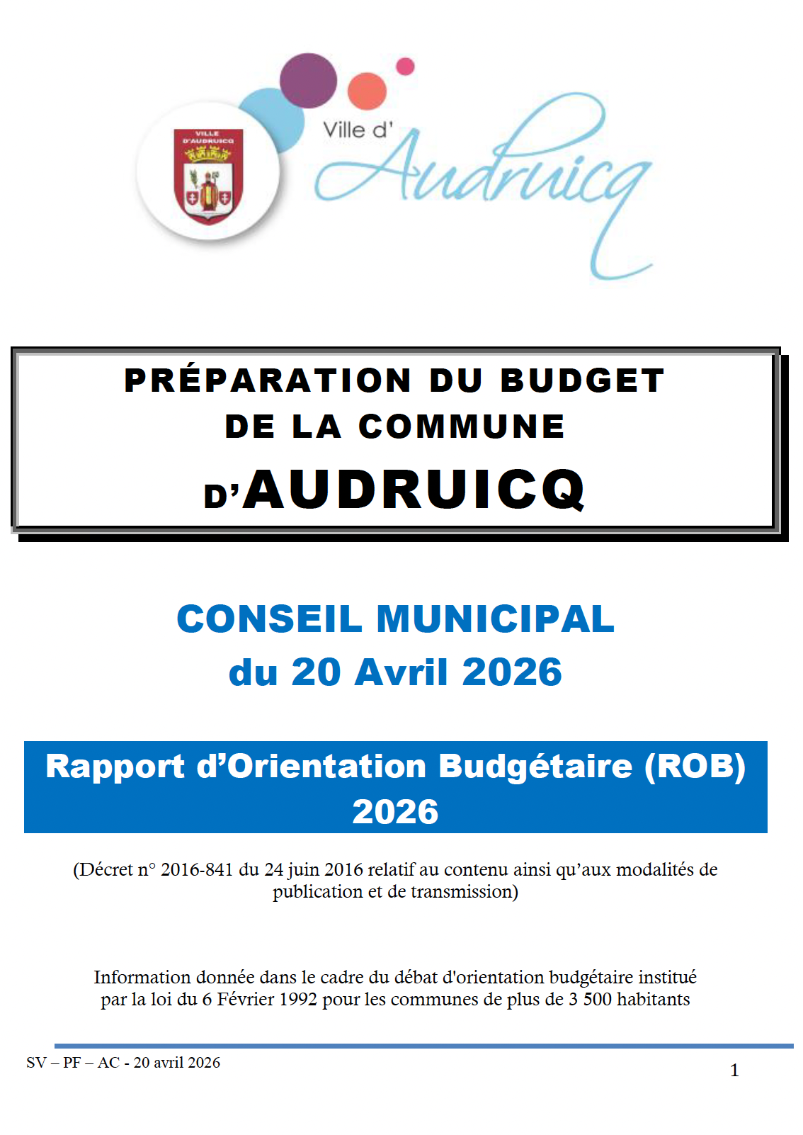 Rapport d'Orientation Budgétaire - Conseil Municipal du 20 avril 2026 Rapport d'Orientation Budgétaire 2026 Cliquer pour passer Rapport d'Orientation Budgétaire 2026 DOB - Budget 2026Rapport d'Orientation Budgétaire 2026 - Conseil Municipal du 20 avril 2026Publié le 21 Avr. 2026 Consulter Slide précédente Prochaine slide Fin du carousel Retour à la liste Retour à la liste